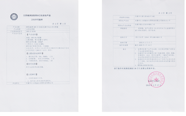 紫外線殺菌器涉水批件
